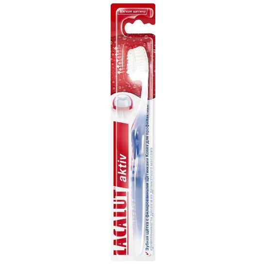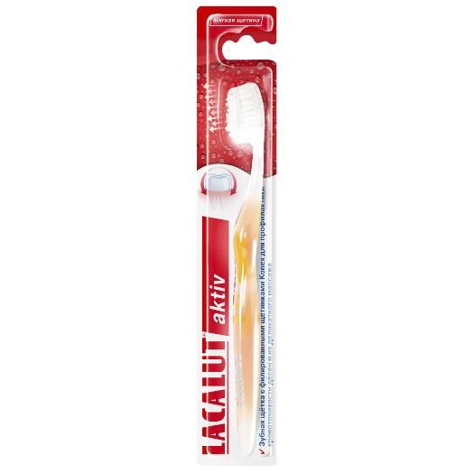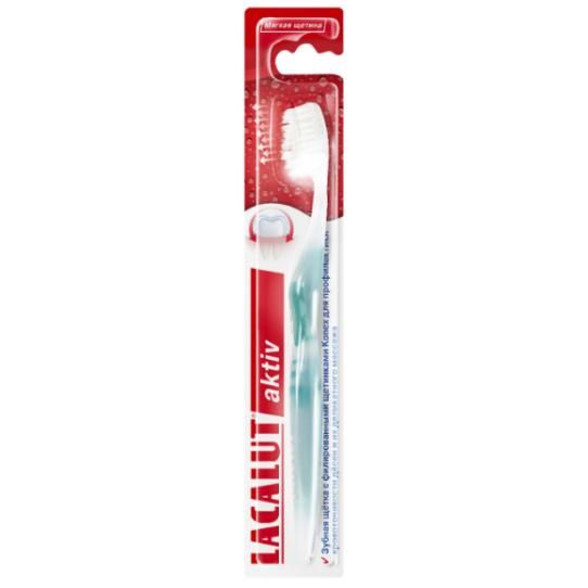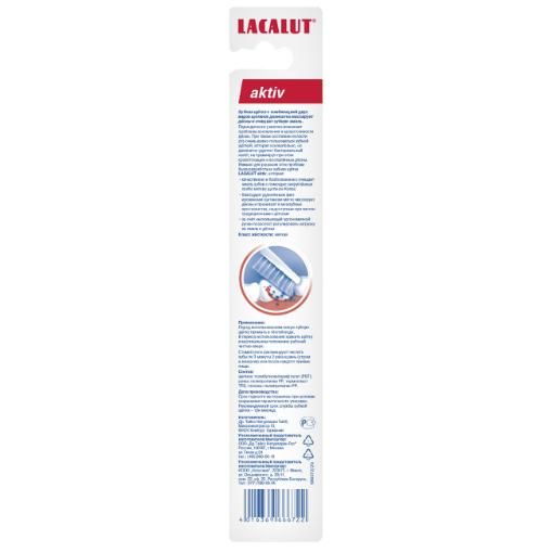 Зубная щетка LACALUT aktiv с комбинацией двух видов щетинок деликатно массирует десны и очищает зубную эмаль. Подходит для использования при проблеме воспаления и кровоточивости десен, не травмируя их.