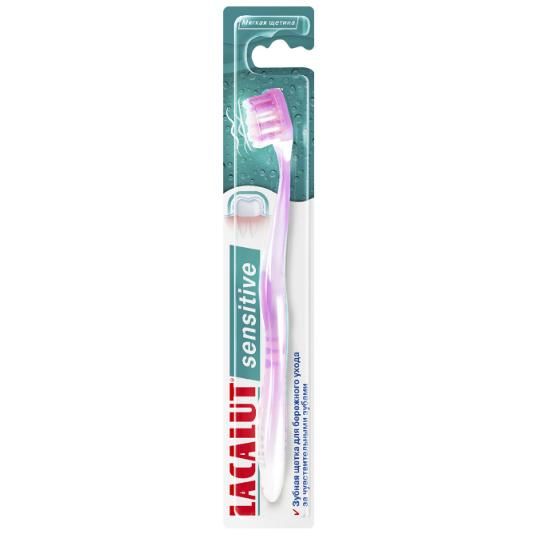 Зубная щетка LACALUT sensitive для бережного ухода за чувствительными зубами. При оголении пришеечной области зуба необходимо бережно, но тщательно вычищать его для восстановления и предотвращения кариеса.